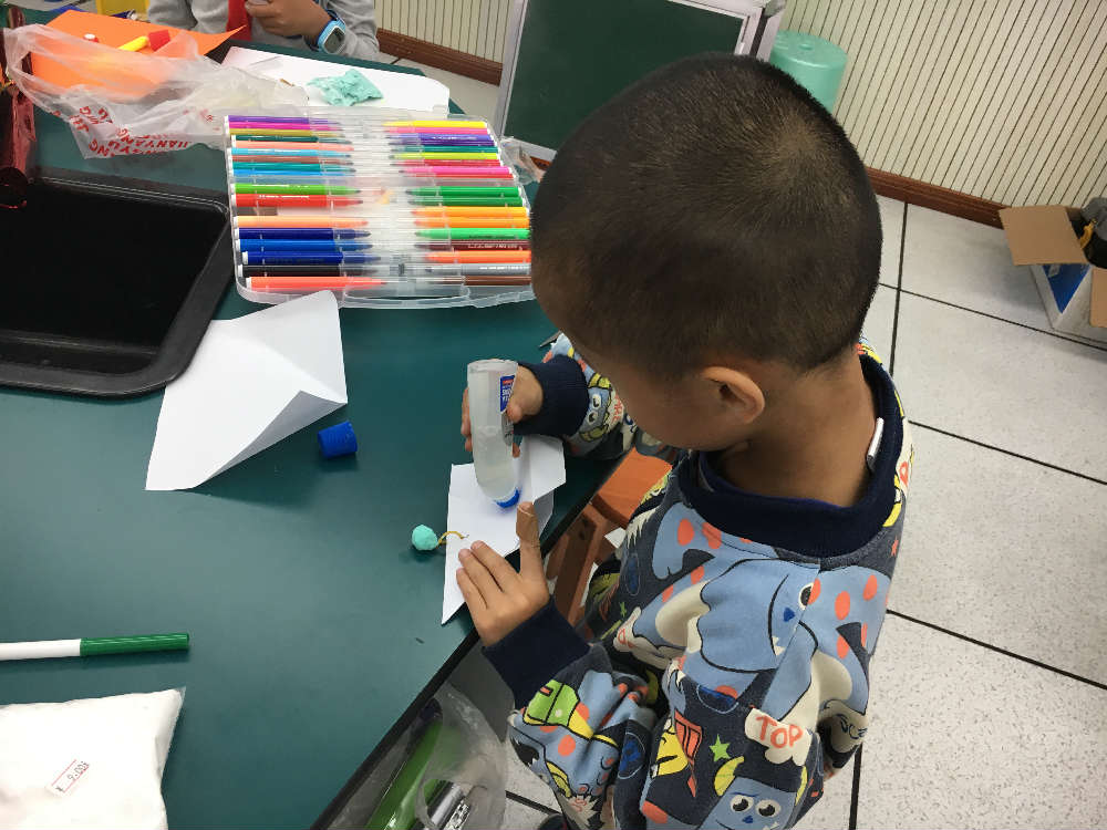 小泡泡们大胆尝试,用自己带来的材料,仿制单翼飞行器,站在高空试验,发现有的飞行器因为前端太重,直接坠落,失败。立马修正自己的飞行器,尽可能选择轻一些的材料,并调整机头和机翼的比例。最后,所有小组的飞行器都可以成功的缓飞,更令人惊喜的是,有些小组的飞机设计成了双翼,甚至多翼。