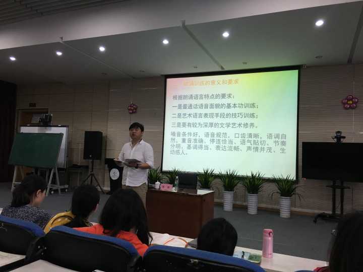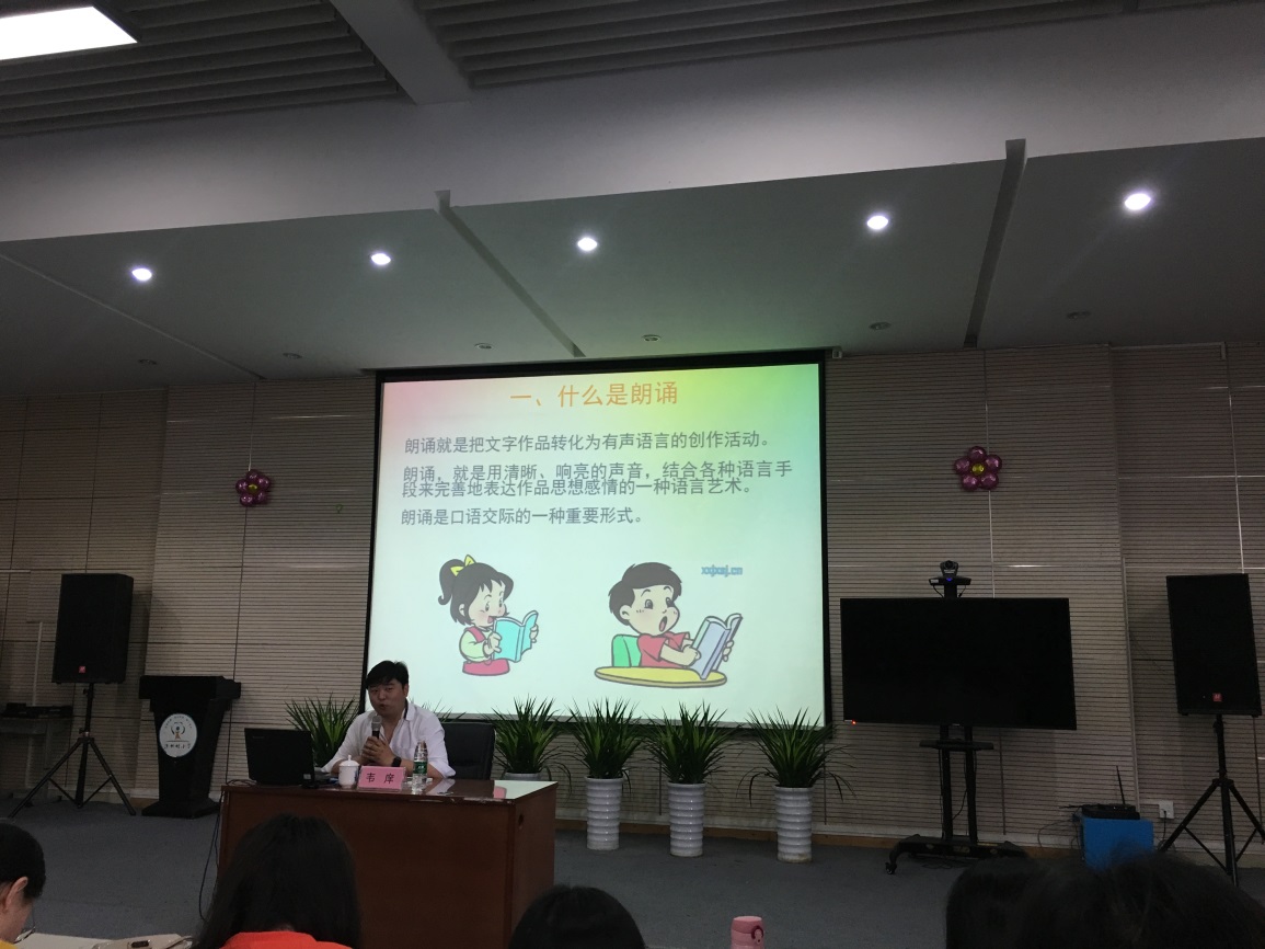 2018年4月28日,我校邀请韦庠老师给全体老师进行了一场有关朗诵的讲座。