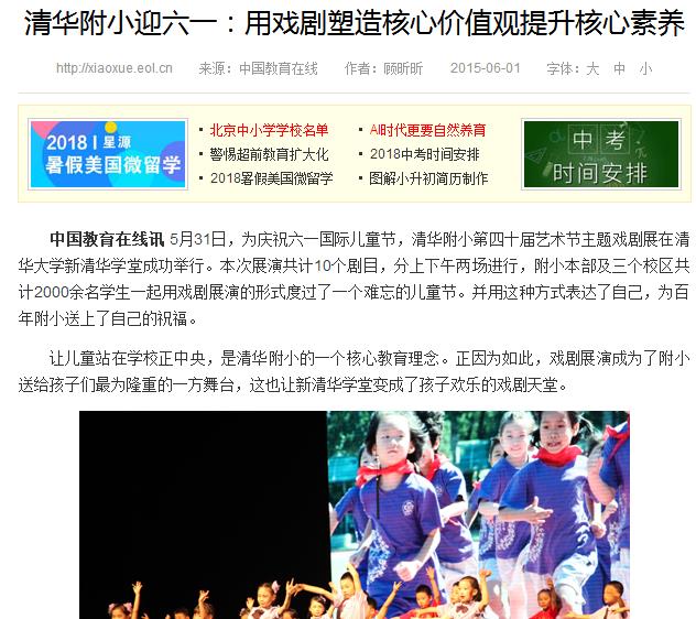 培训结束通过查阅资料,在欧美国家,教育戏剧是一种非常重要的培养学生全面素质和能力的教学方法,甚至被认为是最好的一种教学手段。中国的教育戏剧目前处于起步阶段,不过越来越多的家长认识到教育戏剧的作用以及对孩子全面素质的培养的重要性,因此教育戏剧即将引来在国内的发展的重要时期。清华附小迎六一,《用戏剧塑造核心价值观提升核心素养》,做到“班班有戏剧,人人都精彩”的戏剧课程理念,侧重以主题的方式,尊重儿童认知过程,还原儿童的生活情境。将戏剧课程主题化、教育化。通过探索与实践,目前戏剧已进入附小日常课程表。