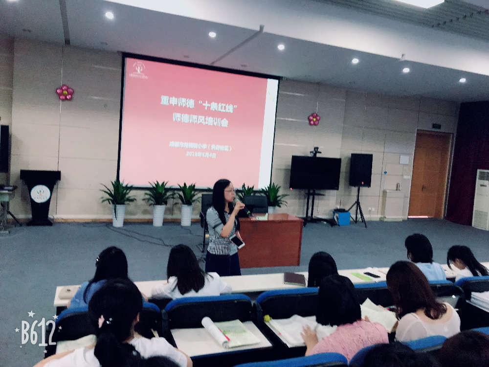2018年6月4日下午,我校以“重申师德‘十条红线’”为主题对全校老师进行了一次师德师风培训。