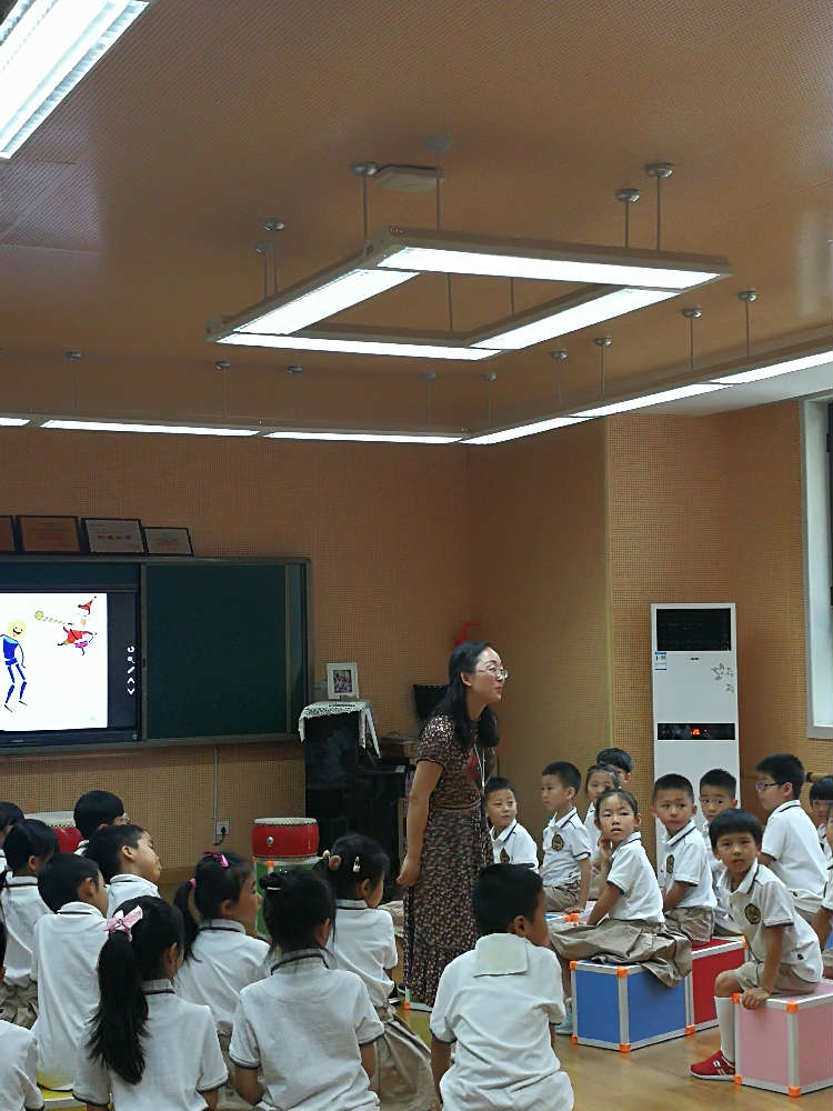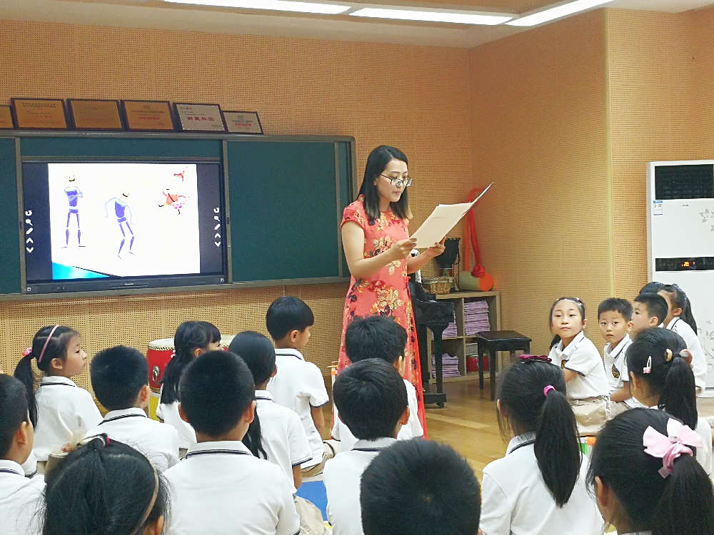 万里燕老师结合“三大教学法”的理念,结合情境教学进行课堂设计,课堂上欢声笑语不断,学生不仅学会演唱了整首歌曲,还为歌曲加入了声势以及打击乐器的伴奏,可谓是丰富多彩。