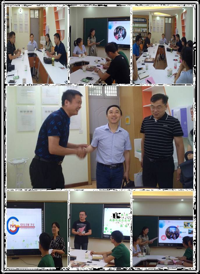 6月8日下午,杨洪亮主任带领成都高新区寇忠泉音乐名师工作室一行来到了中原区互助小学郑州市张贵民语文名师工作室,两个工作室在这里进行了一次深度跨界交流。杨主任和两位导师表示,两个工作室虽是不同学科,但工作室的建设应该是一样的,或许不同学科对工作室建设和发展会有不一样的启示。交流会上,张贵民工作室成员王文娜老师做了题为《一个人的引领 一群人的情怀》工作经验分享,从工作室团队、工作室定位、工作室举措、工作室成果等几个方面对工作室做了介绍,另一成员还做了题为《如何读一本书》十分钟阅读分享。寇忠泉音乐名师工作室成员万里燕也做了题为《做有学术底蕴的音乐教师》经验交流。万老师从工作室培养“三明之师”工作目标出发,通过工作室老师们的真实案例向郑州同仁介绍了工作室“读、教、悟、写”的“四个一”学术名师有效培养途径。最后张贵民导师就此次交流活动做了总结发言,张贵民导师对寇忠泉名师工作室的音乐课作了高度评价,对寇忠泉导师主张的学术引领成员发展策略非常赞同,说今天上午成都两位老师在《小学民歌教学策略研究》下形成的教学课例很好地体现了学术研究精神,并表示要学习寇老师的带队经验,让自己工作室成员也要像寇老师工作室成员一样做学术型的教师。寇老师也表示,要互相学习,将借鉴张贵民名师工作室制度建设,对工作室人员进行科学细致管理,让老师们成长得更快更好。整个交流活动在合影中圆满结束。