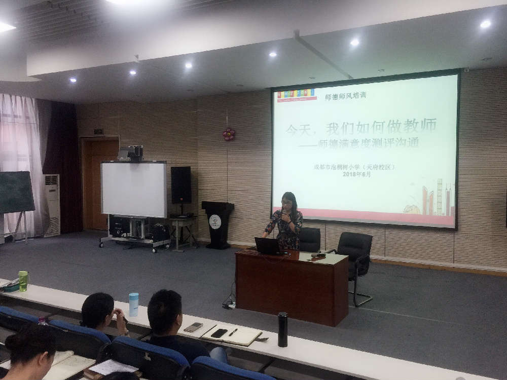 时光似水,转瞬即逝!一学期教育教学工作即将结束,2018年6月25日下午泡小天府的教师期末总结会上,欧主任以《今天,我们如何做教师》为题与大家沟通师德满意度测评。欧主任交流了学生及家长不满意的理由,希望大家引以为鉴,自省教育教学工作,闻过则喜,知过必改。在以后的教育教学工作,努力做到真诚有效沟通,让学生看见我们的爱。在假期完成相应的选修作业及必修作业,潜心钻研专业知识、用心反思教育教学工作,新学年用专业赢得课堂,用专业赢得学生,用专业赢得自己!