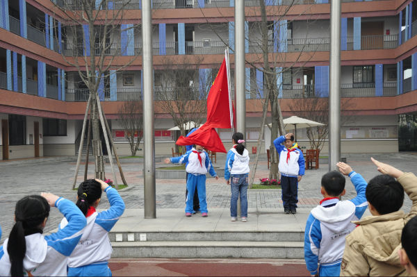 2013年2月25日,成都市泡桐树小学(天府校区)迎来了孩子们开学的第一天,为了在新学期的开始让孩子们树立正确的人生观、价值观;同时也为了让孩子们在新的一学期里有更好的提升,我们秉承学校“为每个孩子最大可能的发展负责”的办学思路,以“精神财富”为开学主题,以“感恩、爱心”为开学引导,特进行了规范化的“升旗仪式”和“拥有财富、感恩身边人、感恩中国“为主题的感恩教育。
