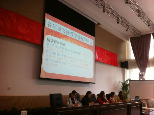 我校卢瑜老师先就北师大版语文一年级下册的教材进行了总体解读,让全体老师对教材有了整体的认识,接着张蓓佳老师、宁超群老师、罗萍老师以及周立音老师分别就识字写字、阅读教学、口语交际以及综合实践方面进行了详细的分析,特别是关于“怎么做”的问题提出了很多新颖的想法和有效的策略。随后,锦晖小学的两位老师也进行了深入浅出的讲解。
