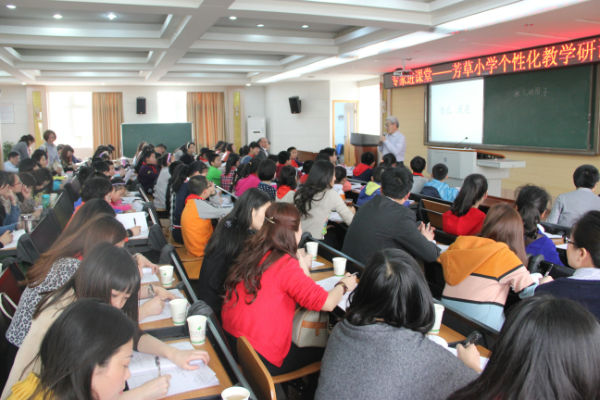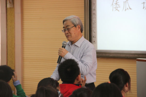 上完一堂示范课,于老师不顾辛劳,又马不停蹄地给现场的老师们做讲座,讲座的主题是“语文教什么,怎么教?”于老说:“做老师的也要常常问自己我教的学科,给学生留下的是什么?”