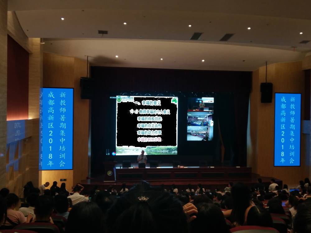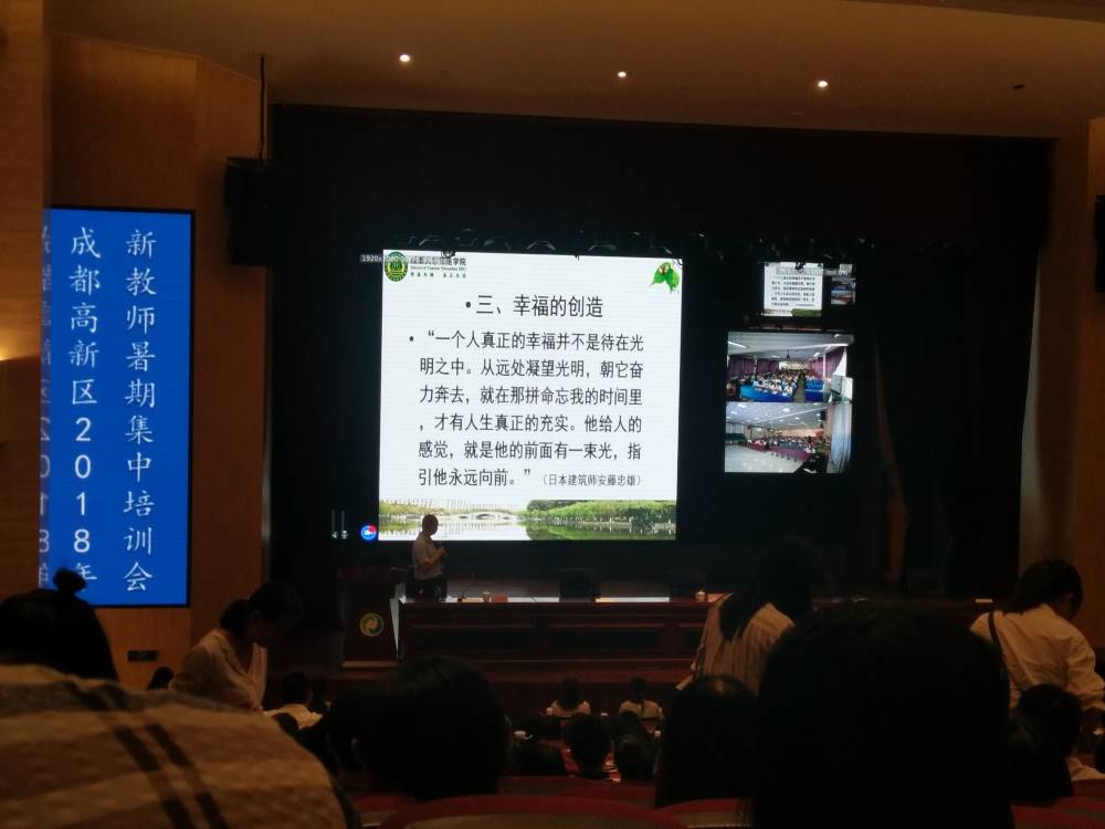 来自成都大学教育科学学院教授陈大伟老师莅临高新区新教师暑期培训现场,为新教师们作了题为“创造幸福教师生活””的专题讲座。
