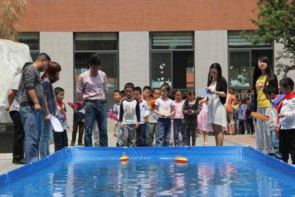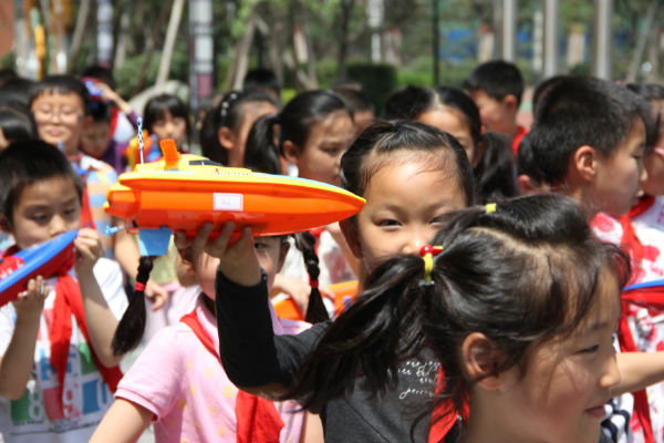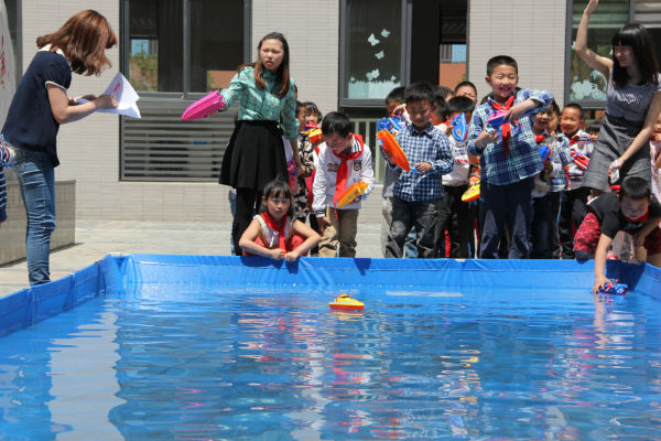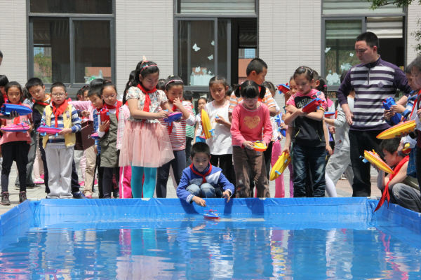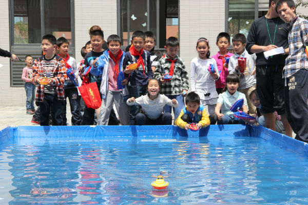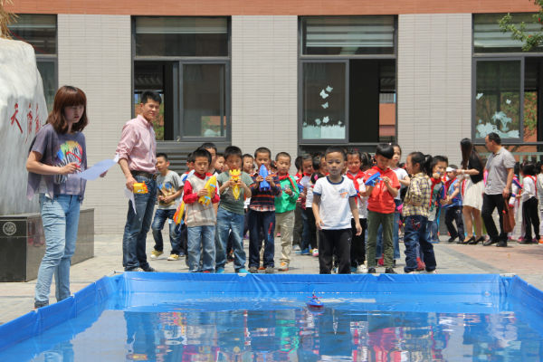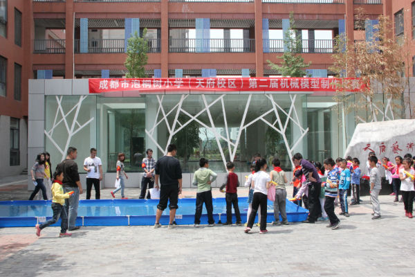 4月16——18日中午,在学校天府艺术中心前,举行了泡桐树小学(天府校区)第二届机械模型制作比赛。到了中午学校艺术中心前顿时沸腾起来,孩子们拿着自己心爱的“船模”,兴高采烈地来到海模池前参加比赛。在他们身后,还有许多同学自由组合成的“啦啦队”和忠诚的观众。