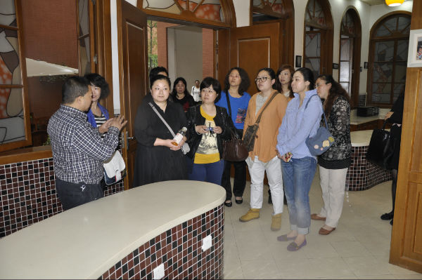 来访嘉宾们首先参观了我校的校园文化建设,陈冠夫校长助理向来宾们介绍了我校的办学理念、办学规模、办学思路,代表团的老师们对我校教室、体育馆、通用技术教室、机器人教室、信息技术教室、书法教室、版画教室等办学硬件设施表示赞赏,对泡家厨房、攀岩、桐下读吧以及美术、音乐、科技等功能角和广泛开展的志愿者工作等特色课程非常感兴趣,他们认为,在这样好的学习环境中学习,不仅能丰富自己的知识,同时也提高了动手能力。这样有着先进的办学理念、教学设施和办学特色的学校,在每个细节都在积极践行为每个孩子的最大可能发展负责的办学理念。