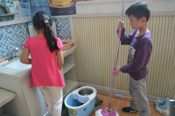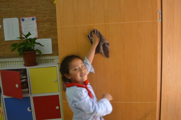 4月26日,一年级的孩子们利用午间代管的时间,对教室进行了一场彻底的打扫。孩子们用自己特殊的方式庆祝“五、一”劳动节,体验劳动的快乐,学校也借此对孩子们进行“洒扫应对”的教育。