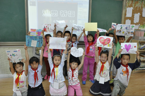 活动伊始,全体同学为地震中遇难的同胞们默哀一分钟,以此表示他们的哀思和祭奠。同学们庄严肃穆,表情凝重,也许他们并不知道默哀真正代表着什么,但是这一切一定会在他们内心深处留下几许印迹。