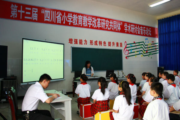 4月24日下午,万里燕老师执教“田野在召唤”,万老师让孩子们在节奏、音高、强弱的变化中,领略到音乐的独特魅力,受到与会专家和老师的一致好评。4月25日上午,唐俊峰副校长参加校长论坛,与来访记者和其他学校的校长进行深入交流,介绍我校的办学理念,获得阵阵掌声。25日下午开始,我校领导和老师兵分两路,分别走进数学和音乐课堂,认真学习、研究。