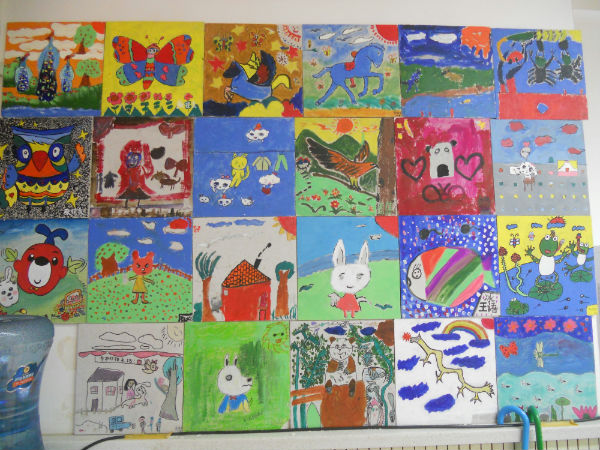 我手画我心。这里是“我最喜欢的动物” 石膏画展览。小泡泡们将自己对动物保护的热情、喜爱全部画在了这一幅幅美丽的图画里。这里有荷叶蛙声图,小兔子乖乖图,骏马奔腾图,鱼儿水中游图,鸟儿歌唱图。呈现给我们一幅幅多么美好而和谐的图画呀!
