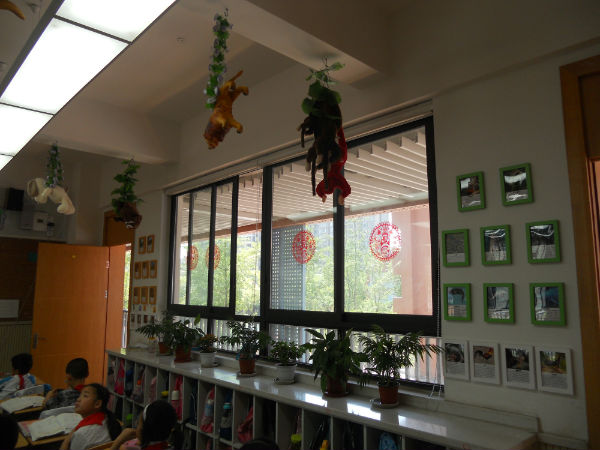 幸运的是,今天你将在二年级二班找寻到孩提时的梦想,找寻到您对生命本身的敬畏。您瞧,首先映入眼帘的是这些活泼可爱、充满童趣的动物玩偶和模型。他们可是二年级二班小泡泡们的亲密伙伴呢,有男孩子喜欢的恐龙、狮子、老虎、金丝猴等,也有女孩子的知心朋友小企鹅、小花狗、小笨熊……以前,他们都只能在家里和自己的小伙伴们游戏、聊天。 从今以后,他们的小宠物将伴随他们在学校的每一天。