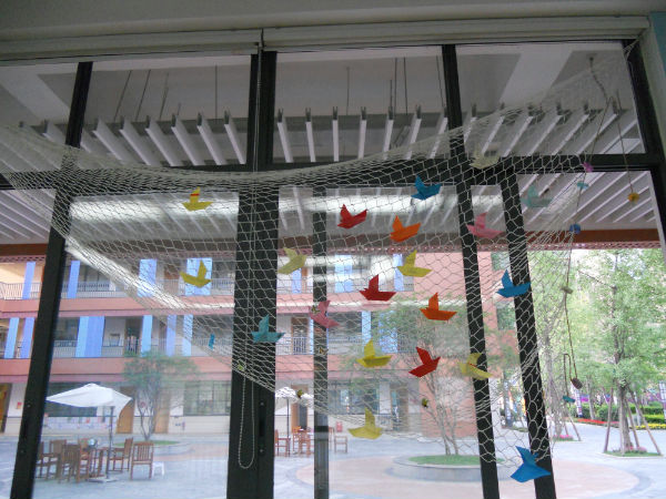 第二板块:梦想天地。在这里悬挂着两张漂亮的渔网,渔网上有许多漂亮的贝壳、小鱼等等,重要的不是装饰,而是渔网上的小船,(这个小船家委会主席夫妻两人折了几个小时到晚上1点多才折完,辛苦了!)在它们身上,承载了班上四十个小朋友的梦想。有的说:“长大了我要当一名宇航员。”有的说:“长大了我当一名动物学家。”有的说:“我要当一名教师。”有的说:“我要吃更多好吃的。(嘿嘿)”