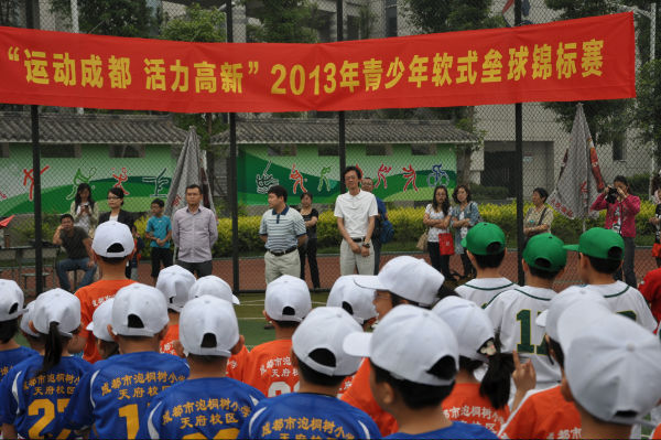 “运动成都,活力高新”2013年高新区软式垒球锦标赛于今天上午9:00正式开幕了,我校垒球队全体队员在教练谢老师和刘老师的带领下参加了本次开幕式。开幕式上,我校垒球队员良好的礼仪和精神面貌给到场的嘉宾留下了深刻的印象,获得了大家的一致赞扬。我校的芶鹏校长也亲自到场,并在开幕式上进行了开球仪式。为我校教练员及参赛队员加油,提升了大家的士气。我们期待并相信队员们在此次比赛中一定能取得优异的成绩,并充分展示垒球的礼仪礼貌和团队合作精神,以良好的精神面貌向全区参赛的队伍及裁判展示泡小天府软式垒球队的最佳风范。