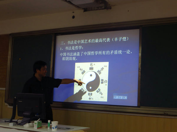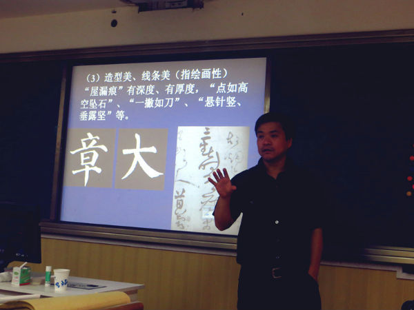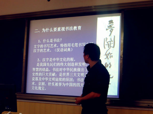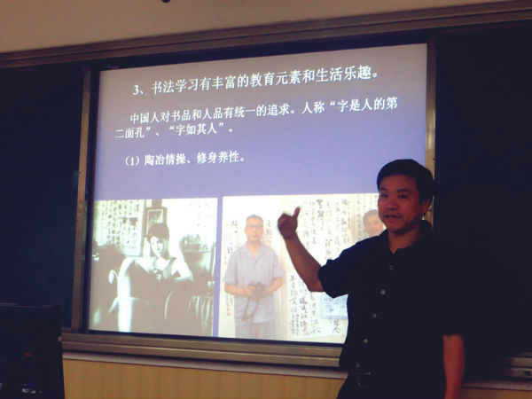 冯老师以他惯有的风趣、睿智的教学语言、风格,从书法教育的重要性、历史发展、教学现况等拉开了此次讲座的活动序幕。