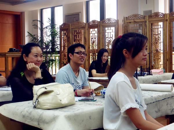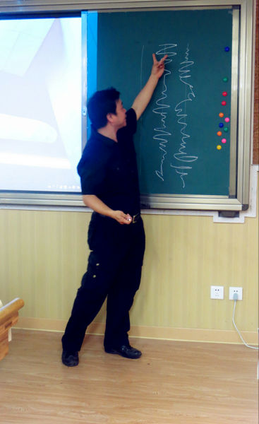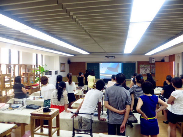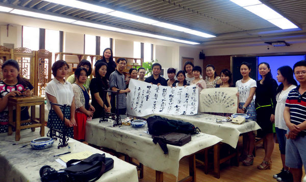 并结合美术的视觉特点,讲解了书法在平面设计、室内设计、包装设计、建筑等艺术领域的拓展与运用,让老师们全方位、多视角的对书法艺术有了一个更深入、形象认识全方位认识与了解。