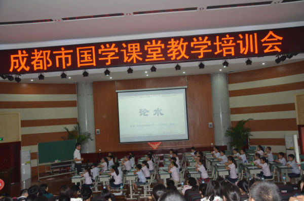 2013年5月28日,成都市泡桐树小学(天府校区)语文老师参加了由成都市教育局主办、高新区承办的“成都市国学课堂教学培训会”。培训会由成都市高新区新光小学谢治国校长主持,谢校长代表高新区对来自各校的老师表达了热烈欢迎。老师们用心聆听,享受了一场国学视听盛宴。