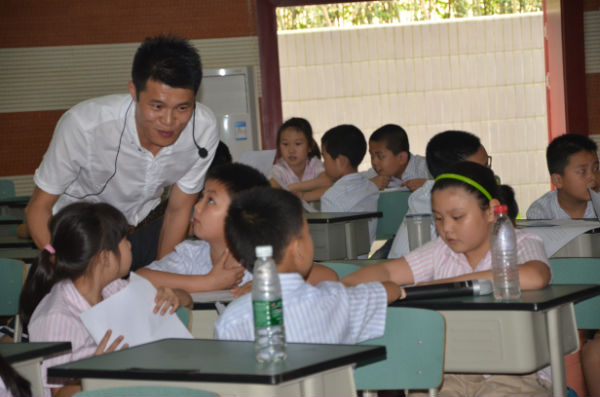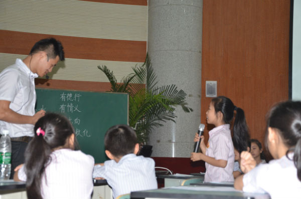 培训活动中,我校青年骨干教师周强老师以“水”为主题,为大家展示了一堂生动的小学国学课。课堂中,周老师为了充分调动孩子学习的积极性,以猜谜的形式引入了主题,并通过惟妙惟肖的视频欣赏、指导朗读、小组活动等方式,促使孩子对“水”有了更深一层次的理解。与此同时,成都七中初中学校的胡霞老师、成都著名国学教育专家揭晓溪老师为在座各位老师分别呈现了一堂初中、高中的国学课。下午揭老师还以“在中小学开展国学启蒙教育的实践与思考”为主题,为大家介绍了许多行之有效的国学教学方法。成都市双流教育局、成都市高新区教育处、成都市红牌楼小学也在会上与大家做了生动的经验交流。