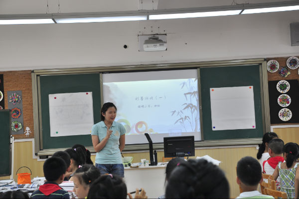 首先,由来自中和小学美术组的冯丹老师,带来的了精彩一课《舞动连箫》。这堂课属于造型.表现领域中实践操作性较强的课,也是具地方特色的自编教材。不仅对上课老师的美术素养和课堂驾驭能力有较高的要求,对学生的小组合作与分享能力也是新的挑战。