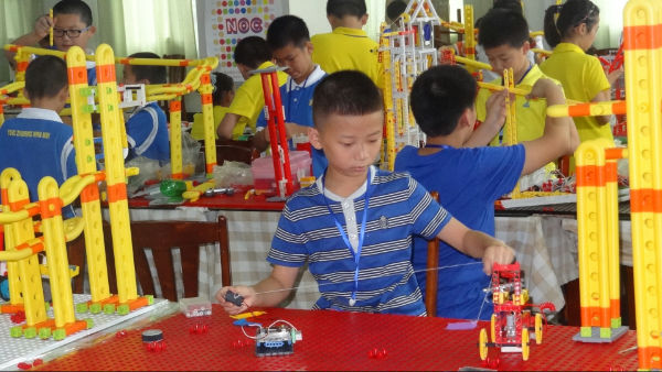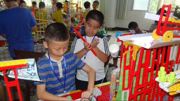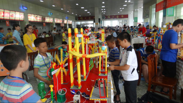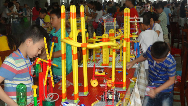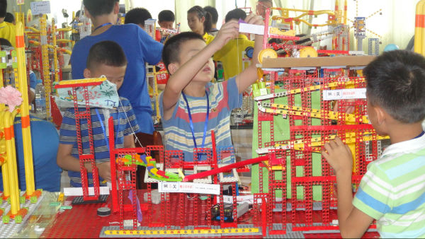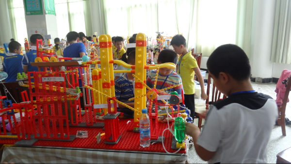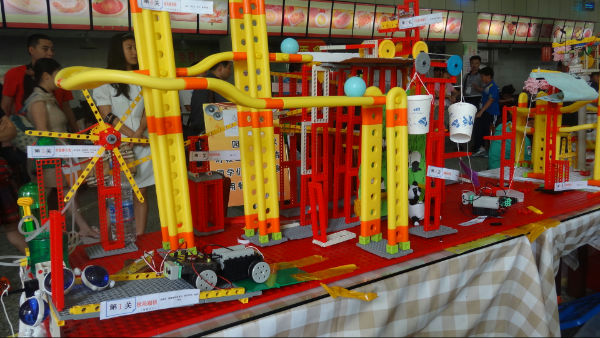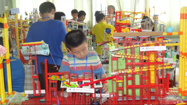 本次比赛有80支队伍近200余人参赛,参赛选手都是各地方代表选派来的尖子选手,有着丰富的比赛经验和扎实的基础知识。我们学校的小选手也不甘示弱,他们在队友的配合下,熟练地搭建着积木,在比赛过了一半的时间里,就顺利搭建了一环连接一环的联动装置,关卡包含了智能关卡、科学原理关卡、绿色能源关卡和地方特色关卡。三个小时的搭建调试时间后,紧接着的是小选手的答辩时间,要求孩子们要掌握一定的科学原理知识,在答辩中,我们的四位小选手灵活应对裁判提出的各种问题。比赛完后,我们和孩子们在一起交流,找原因、找差距,也明确了今后我们的努力方向。我们相信我们的孩子们在一次次的历练中,将会变得更加智慧、成熟、坚强。