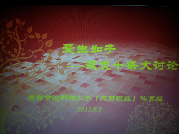 2013年9月5日星期四下午3点,我校体育组老师召开了进入9月以来第一次集体教研活动。本次研讨主题:减负十条学习与教案编写研讨。本次活动邀请到高新区优秀的体育教师戢惠斌老师到场指导。