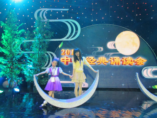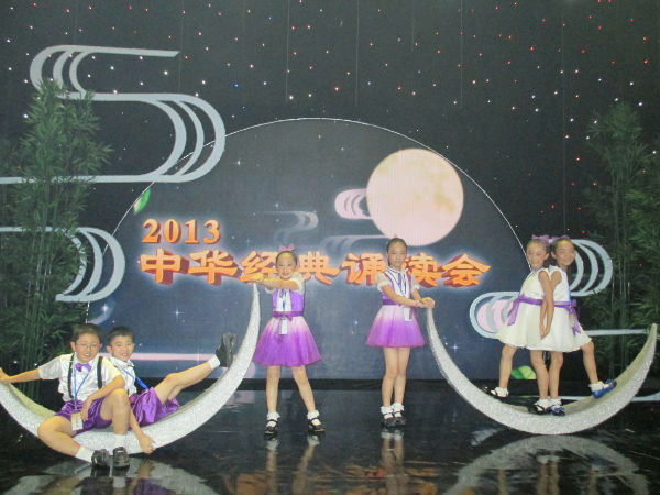 为深入贯彻落实党的十八大提出的建设优秀传统文化传承体系,弘扬中华优秀传统文化的战略任务,根据《关于在全社会广泛开展中华经典诵读活动的通知》(川文明办[2012]39号)精神,今年中秋,省委宣传部、省文明办、省教育厅、省语委、四川广播电视台将举办2013年全省中华经典中秋诵读电视晚会。经全省专家组评审,我校中华经典诵读节目《月韵》作为全市唯一一个小学组节目入选本次中秋诵读晚会。