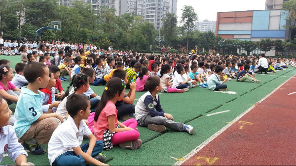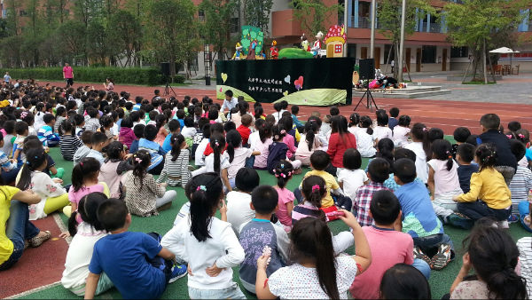 9月23日下午成都市泡桐树小学(天府校区)的操场上,孩子们笑声连连,掌声阵阵。原来是成都市木偶皮影剧团、成都市少儿艺术剧团来到学校,现场给孩子们表演精彩的木偶剧。