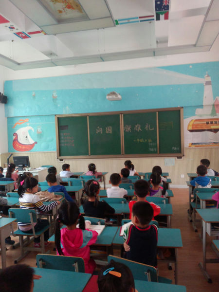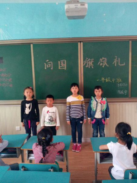 为庆祝新中国成立64周年,泡桐树小学(天府校区)一年级开展了以“向国旗敬礼,做一个有道德的人”的主题班队活动。