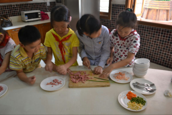 同学们在做炒饭前的准备