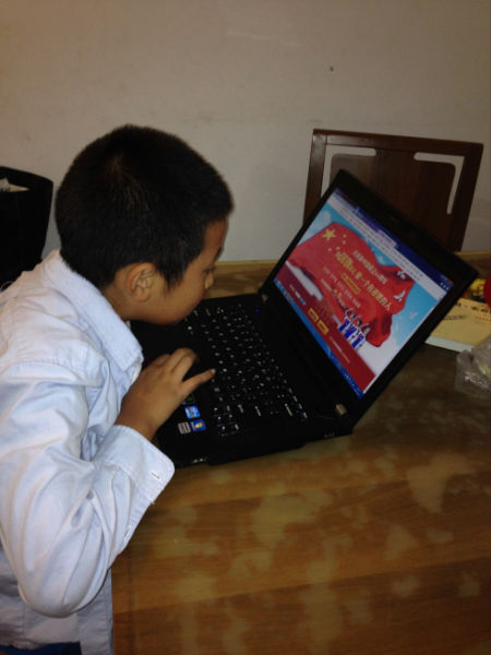 国庆期间,在电脑前,同学们打开网站,面向国旗庄严敬礼,轻点鼠标,抒发感言,表达心声:“我爱你,飘扬的五星红旗,我爱你,伟大的祖国。再次,我向国旗敬礼,祝我们的祖国繁荣昌盛,越来越强大!”一句句发自内心的话语表达了四年级泡泡娃们对祖国的祝福。