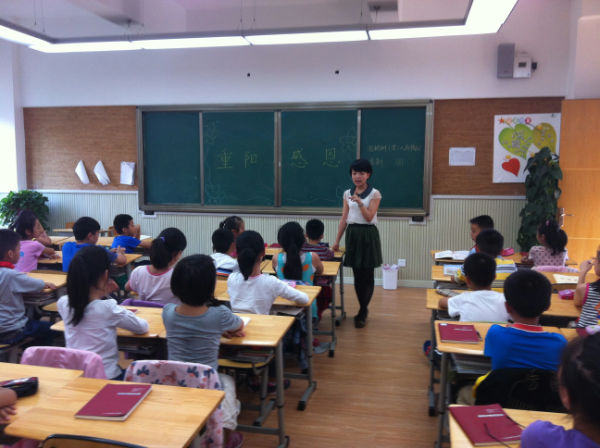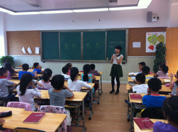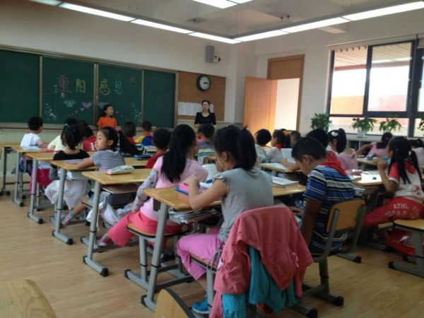 “ 独在异乡为异客,每逢佳节倍思亲。遥知兄弟登高处,遍插茱萸少一人。”“又是九月九,重阳夜, 难聚首……”听,4(3)班教室里的诗歌朗诵和歌曲声此起彼伏。
