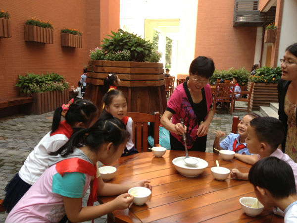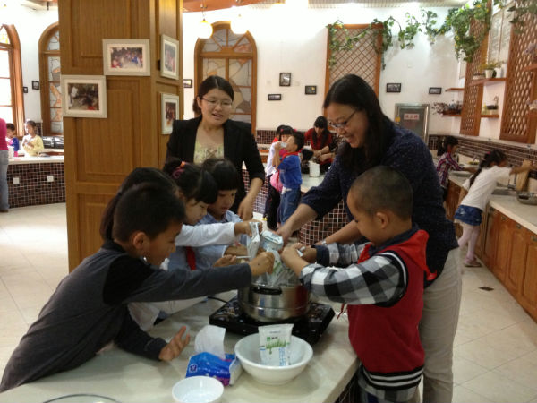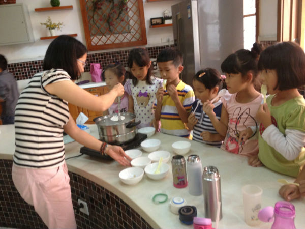 二年级的泡泡娃们继上次“泡家农场”收获花生后,又在“泡家厨房”以收获的花生为原材料烹煮“花生牛奶汤”。各班泡泡娃在家长义教的协助下,认真学习“花生牛奶汤”的烹制步骤,并亲手操作,感受收获的喜悦,体会劳动的乐趣。义教家长在“泡家厨房”与泡泡娃们亲切互动,场面温馨,其乐融融,度过了一段愉悦的亲子时光。