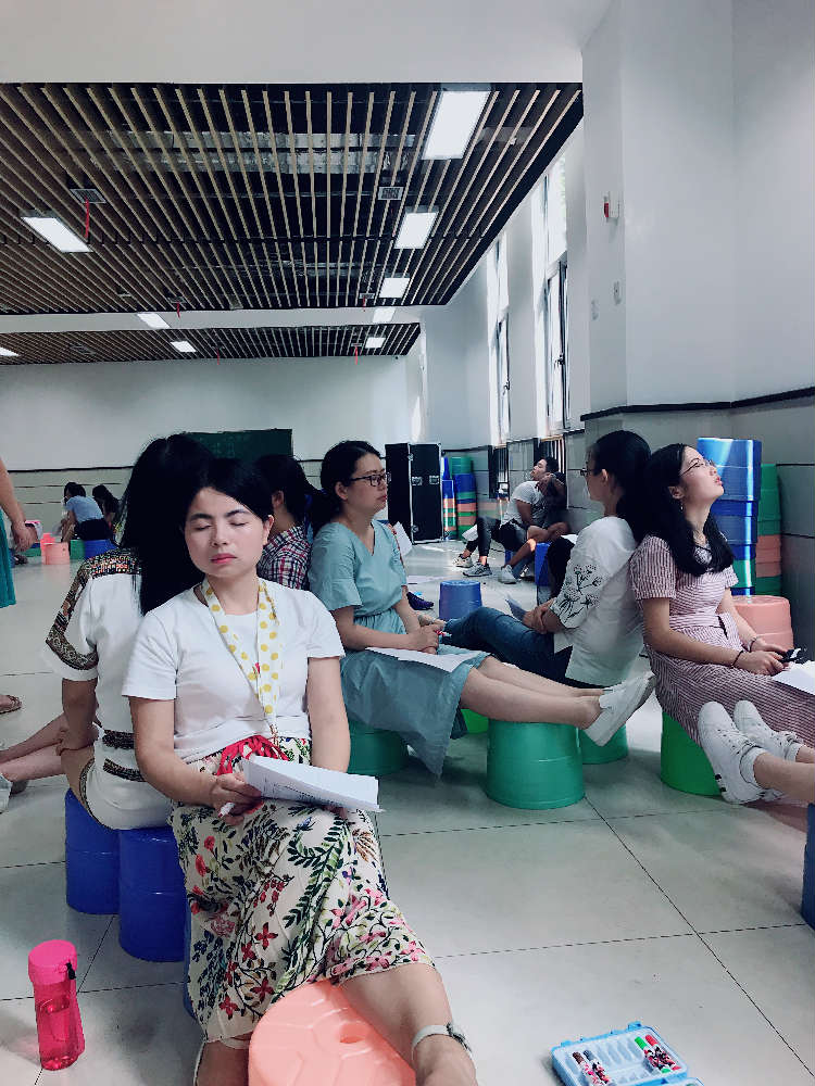 第一个活动:光谱测量。给出0-10这10个分数,0表示无压力,10表示压力的最大值,让老师们根据自评自己的压力分数,进行站队。是的,我们有好几位老师压力为0,也有好几位老师感觉压力为9,真正感觉压力山大的也就是10分的没有,大部分老师的压力指数在4-6之间。
