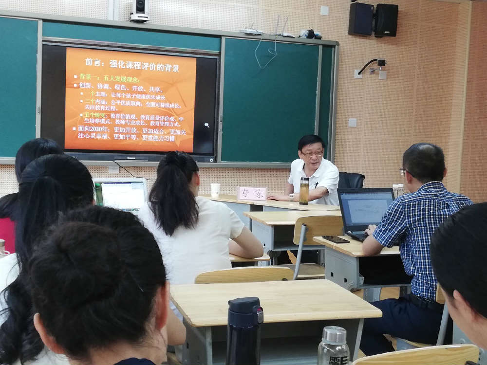 课程是学校教学的核心;课程评价对课程发展意义重大。但是,对于一线老师来说,在课程实施中,最为困难和困惑之处在于课程评价。那么,什么样的课程评价有利于学生身心发展?我们又该如何进行有效的课程评价呢?为了解答这一普遍困惑,我校很荣幸地邀请到了周小山教授于8月27日为我校骨干教师做了全面、系统有针对性地培训与指导。