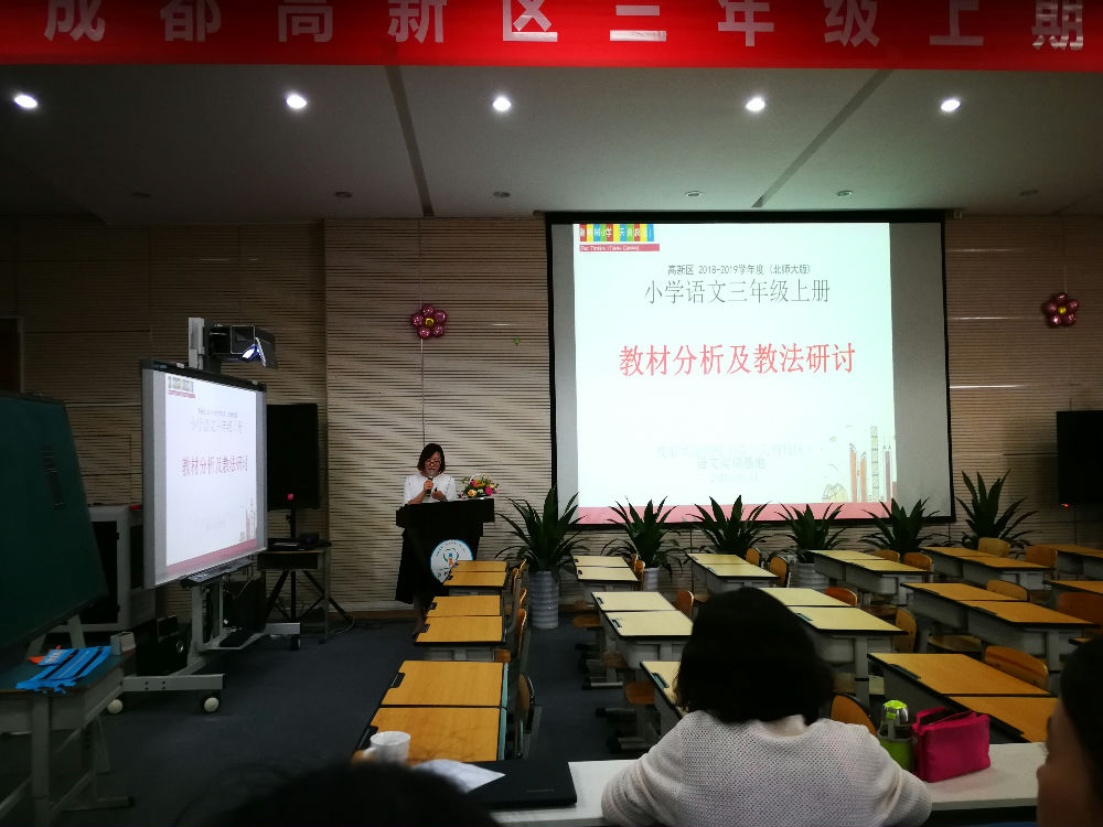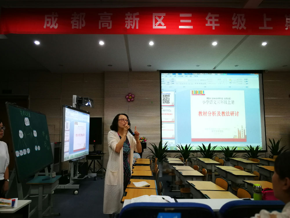 九月果香,九月菊黄。九月,是收获的季节。9月11日下午,成都市高新区三年级的语文老师们,踏着秋的步伐,来到美丽的泡桐树小学天府校区,参加三年级语文教材分析和教法研讨活动。本次活动由高新区教研员、泡天校长宋茜全程指导,由泡天语文实训基地三年级组的老师们精心准备、精彩呈现。