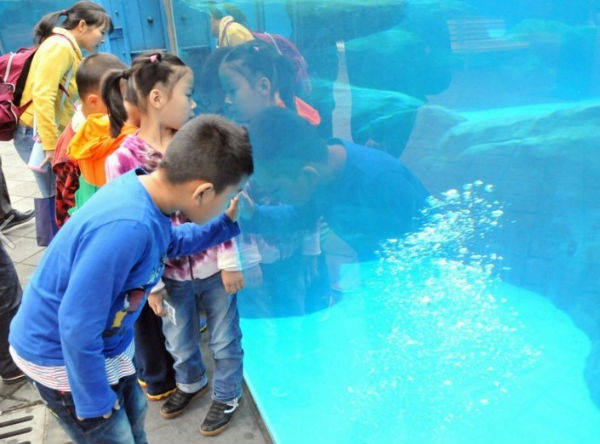 上午9:00,孩子们怀着兴奋与期待,兴致勃勃地准时来到了地海洋世界。一进海洋世界,孩子们就顾不得家长的呼喝,立刻根据课文上学到的知识兴奋地看这看那。不断听到孩子们惊呼:“看!北极熊”,“ 看!那是海狮”,“ 看!那是海豹”,“那是可爱的海豚”, “那是企鹅”……。