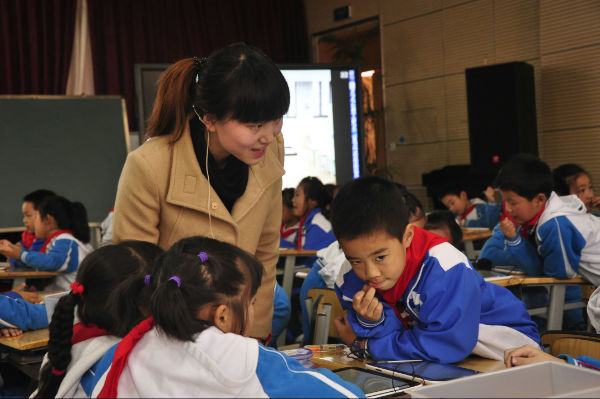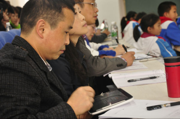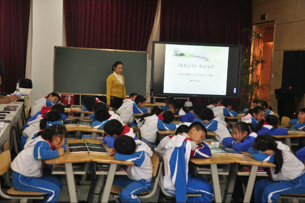 接着我校向三军老师为我们展示了一节数字化一对一的科学课——《我们的周围》。通过一段视频的实验导入,然后通过学生思考,交流。通过平板学生能接收到更多的信息,而且每个学生都能够动手操作,使课堂教学效果大大提高了。