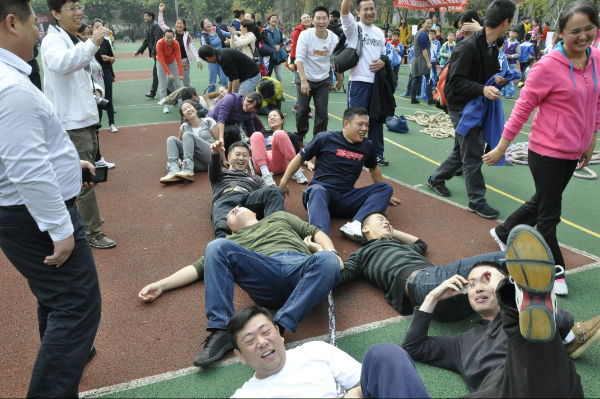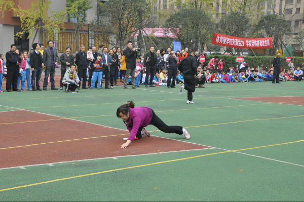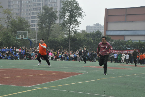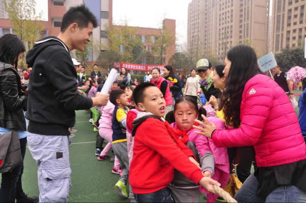 作为本届运动会最大的看点就是我们的家长集体项目——50米迎面接力和拔河比赛。作为首次参加学校运动会的家长们来说都非常兴奋和激动,通过这样一种方式无形间给孩子们一种莫大的鼓舞。特别是在50米迎面接力赛中,很多家长都在全力奔跑的过程中摔倒,但没有一个家长选择退出。在哪里跌倒就在哪里爬起来继续,不管是第一个还是最后一个,他们都是胜利者,我们相信这个项目这个场景都会给同学们传递一种强大的正能量。