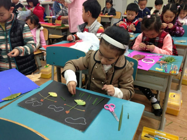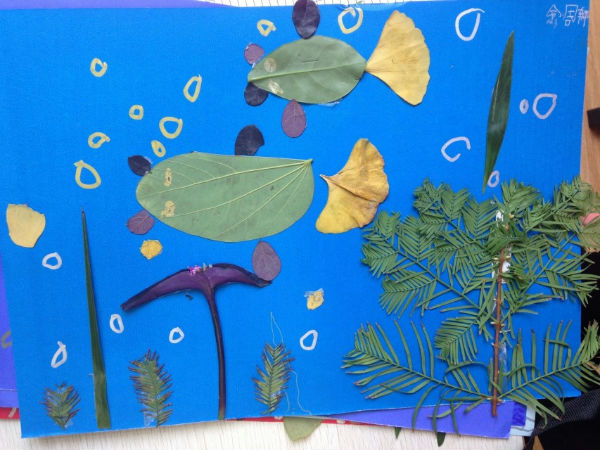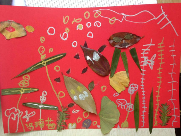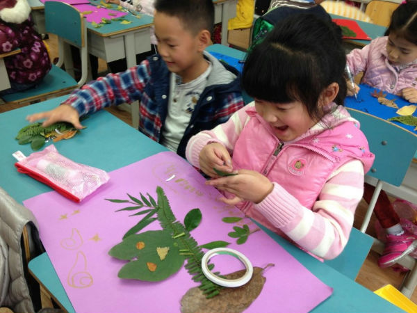 李丹阿姨在给小泡泡们讲解了用树叶作画的基本步骤和要领后小泡泡们就迫不及待的挽袖上阵了。小泡泡们拿出各自事先准备好的各种树叶、卡纸,就迅速地投入进了他们的创作之旅·······