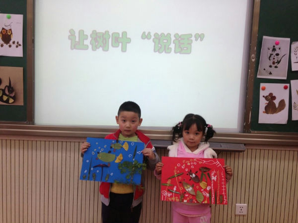 上课了,李丹阿姨走进教室,开始了今天的奇妙课程。李丹阿姨先给大家展示了一幅幅用树叶做成的画,引来了小泡泡们一阵阵的啧啧称赞声。
