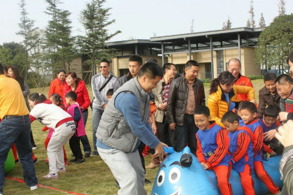 比赛中,每一个学生及家长个个认真投入,手拉手,肩并肩,紧密配合,参赛家庭你追我赶,还不忘相互鼓励,把比赛放第二位,把孩子的快乐放第一位。观看的学生及家长们则在呐喊助威,拿着摄像机和照相机捕捉最精彩的瞬间。活动结束后,家长和孩子们依旧沉浸在那欢乐的气氛中,久久不肯离去……。