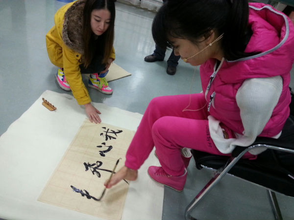 演讲过后,雷庆瑶姐姐还现场展示了书法,为大家写下了”我心飞翔“四个大字。