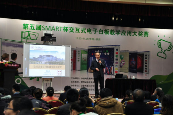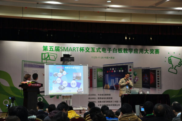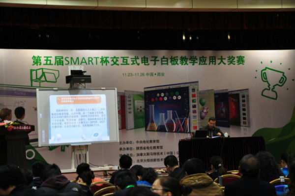 为促进新技术在中小学的有效应用,探讨电子白板等现代交互技术给教育方式变革带来的机遇与挑战,交流分享经验,促进信息技术与学科教学的深度融合,中央电化教育馆于2013年11月23在陕西省西安市举办第五届SMART杯交互式电子白板教学应用大赛现场活动。来自全国各地的几百名代表参加了此次活动。我校校长芶鹏带领美术组组长黎力铭老师和科创组杨眉老师参加此次活动。