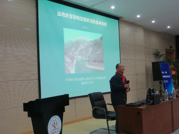 为了推进我校科技教育特色项目的有效实施,丰富学生课余文化生活,培养学生爱科学、学科学、用科学的好习惯,提高小学生科学知识水平、促进青少年科普教育事业的发展。2013年11月28日,“院士、专家科普进学校大型公益活动”在多功能室开展。 本次活动很荣幸的邀请到了中国科学院水利部谢洪教授对我校三、四年级的学生进行山地灾害和地震防灾减灾基础知识的讲座。