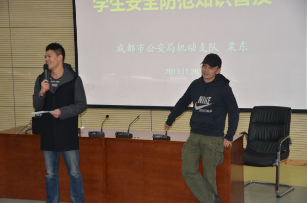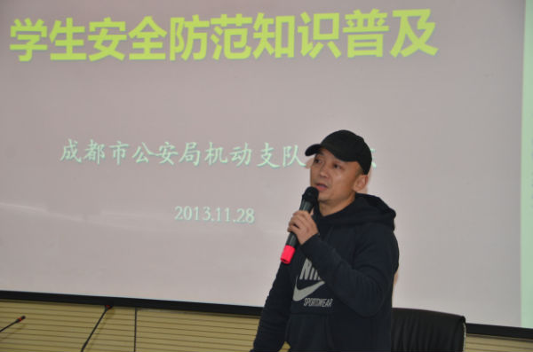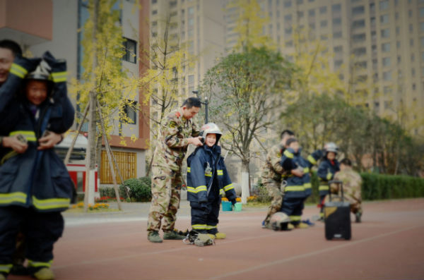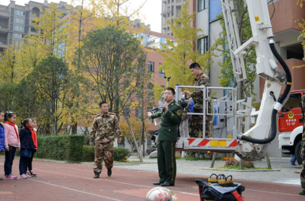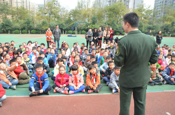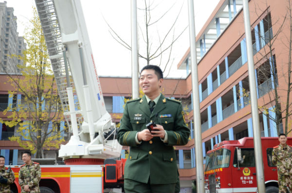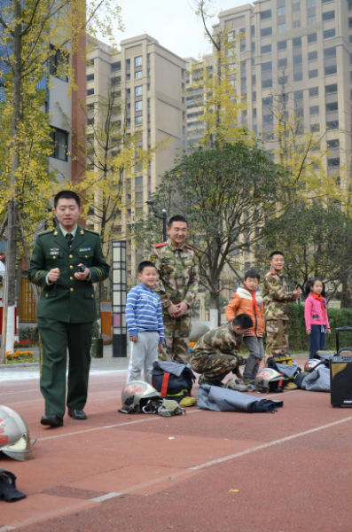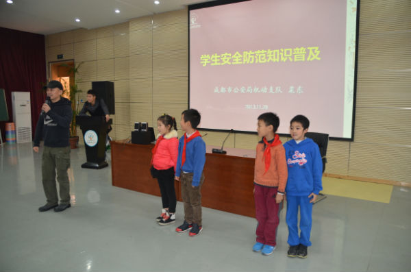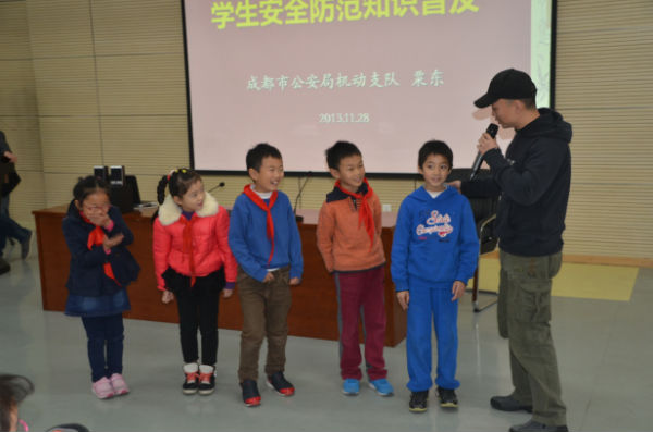 为此,2013年11月28日中午,成都市泡桐树小学(天府校区)二年级组邀请到了成都市公安局机动支队大队长粟东同志、成都消防总队官兵叔叔为孩子们带来了“学生安全防范体验式训练课程”及“消防安全体验课程”。