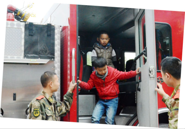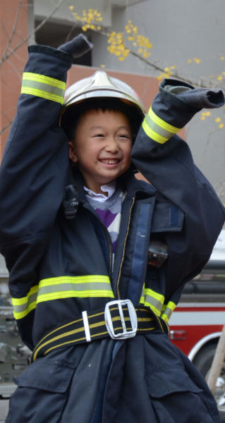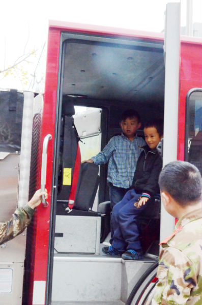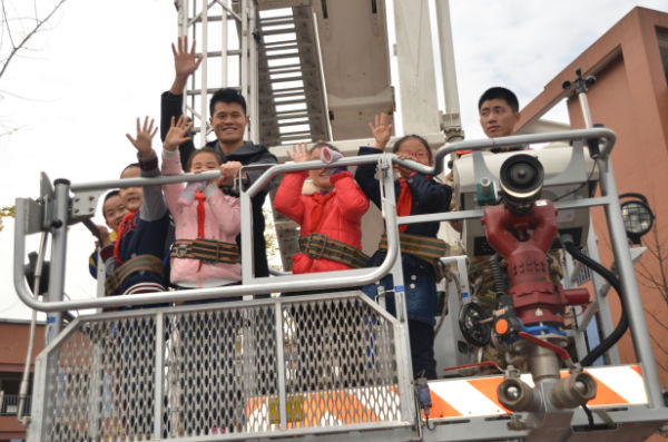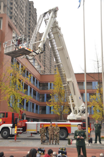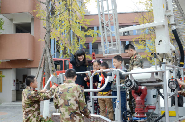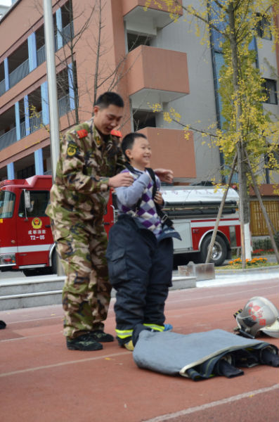 课后,二年级全体小泡泡还手牵手,来到了学校操场。在这里等待大家的是成都消防官兵叔叔和与他们并肩作战的两辆大型消防车——水罐消防车、53米高空消防车。年幼的小泡泡们,见到如此壮观的消防车,激动不已,迫切地希望着消防体验活动的快快进行。于是,在刘指导的组织安排下,小朋友们观看了消防员叔叔现场灭火、速穿战斗服等表演。小泡泡们激动不已,不甘示弱,也勇敢地走上前,比赛起了速穿战斗服。别看小泡泡们身体小,穿战斗服时还有模有样,特别能干。此后,为了让小泡泡能够亲身体验消防官兵叔叔高空灭火的感觉,勇敢的小泡泡们积极参与,亲身体验了高空云梯消防车,并参观了消防车。此次活动,重在树立孩子的安全意识,培养孩子的安全保护能力。孩子们在丰富多彩的体验活动中,开拓了眼界,收获了知识,提升了能力。