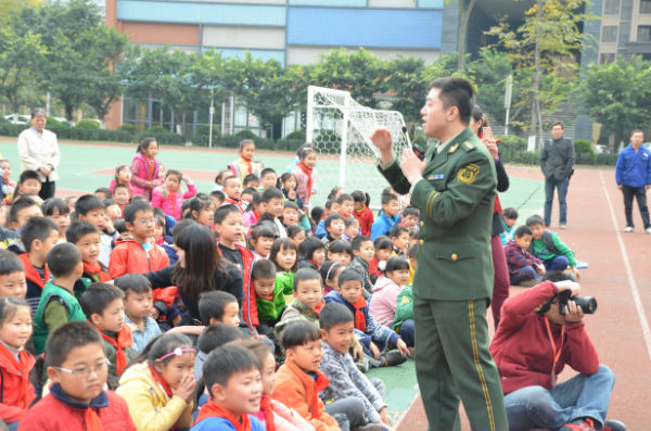 粟队长首先从自己参加5 ?12汶川大地震,玉树大地震,芦山大地震的救援经历说起,回顾了他在金建小学救援的亲眼所见。粟大队现场考验大家遇到地震应该怎么处理,孩子们运用平时积累的知识纷纷作答,粟大队对于同学们提出的方法进行了一一点评。