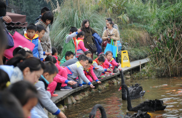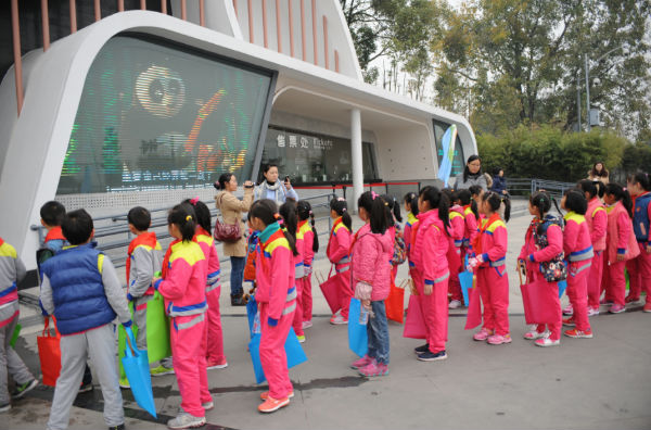 2013年11月28日,泡桐树小学(天府校区)全体师生来到成都市大熊猫基地,与可爱的大熊猫、小熊猫、孔雀及多种鸟儿们进行冬日的“约会”。来到熊猫基地以后,受到了熊猫基地工作人员——二年级六班杜昕怡妈妈的热情欢迎,孩子们在导游姐姐的引导下开始了参观。